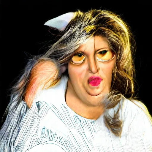 次に、上と同じく、「子猫を抱いた、帽子をかぶった女性、髪の毛はブラウンで、長く、カーリーです。」と入力します。